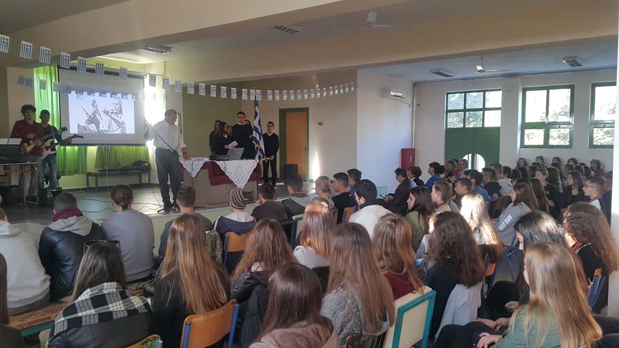 Στο 1ο Γενικό Λύκειο Καρδίτσας, την Παρασκευή 27 Οκτωβρίου 2017, μαθητές και μαθήτριες πραγματοποίησαν μια όμορφη και συγκινητική εκδήλωση αφιερωμένη στο «έπος του 40», στον ηρωικό αγώνα του λαού μας για λευτεριά ενάντια στους κατακτητές του γερμανοϊταλικού φασιστικού άξονα.