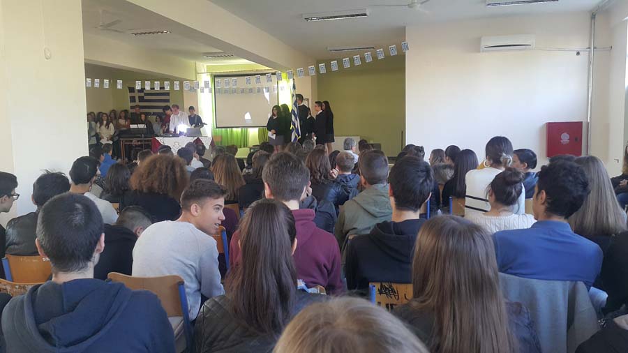 Τη σχολική γιορτή παρακολούθησαν οι μαθητές των τριών τάξεων του σχολείου, απόφοιτοι μαθητές, καθηγητές καθώς και γονείς σύμφωνα με το παρακάτω πρόγραμμα:
